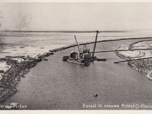 Foto’s de aanleg van de polder, over dijkenbouw, gemalen en kanalen. De foto’s komen uit de ansichtencollectie.