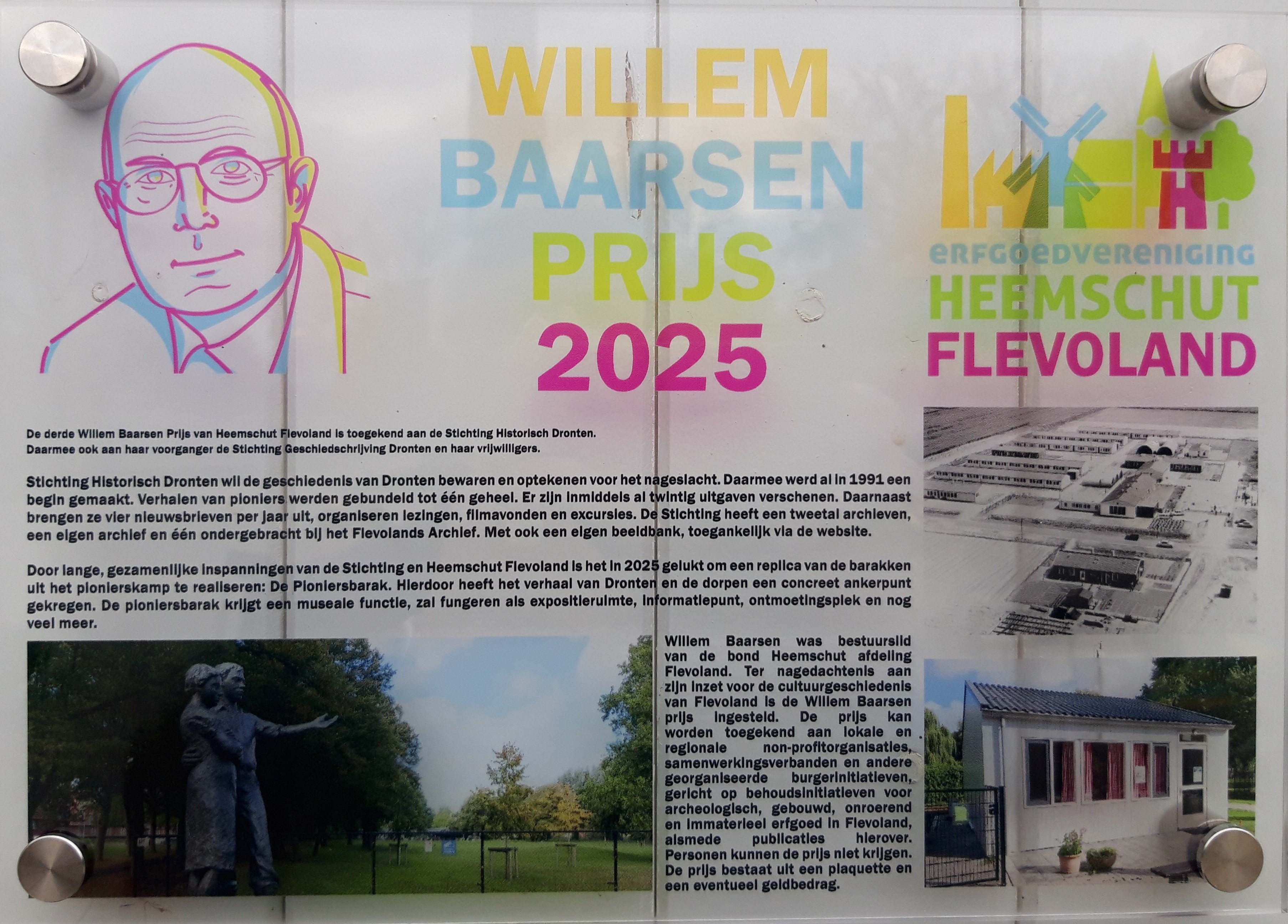 De erfgoed vereniging Heemschut Flevoland heeft de Willem Baarsenprijs aan de Stichting Historisch Dronten toegekend.